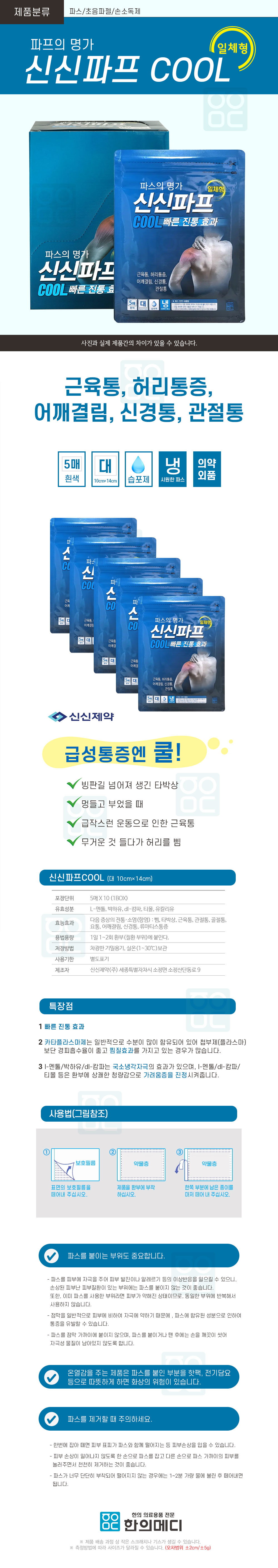 신신파스 붙이는 파프 일체형 파스 쿨 1BOX (50매)