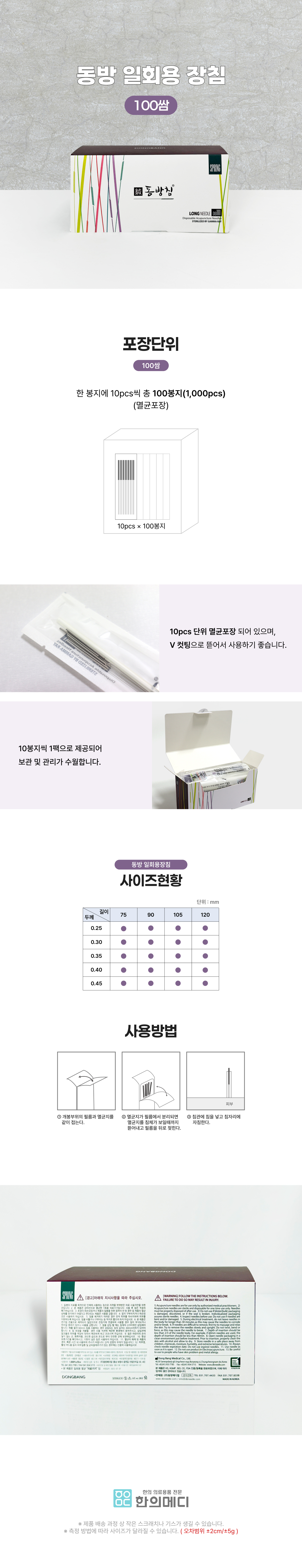 | 제품의 사용목적 및 사용방법 | 질병의 치료를 목적으로 인체에 사용하는 침 |