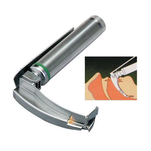 ► 블레이드 끝부분을 핸들레버로 꺾을 수 있어 무리한 힘을 가하지 않고도 intubation을 쉽게