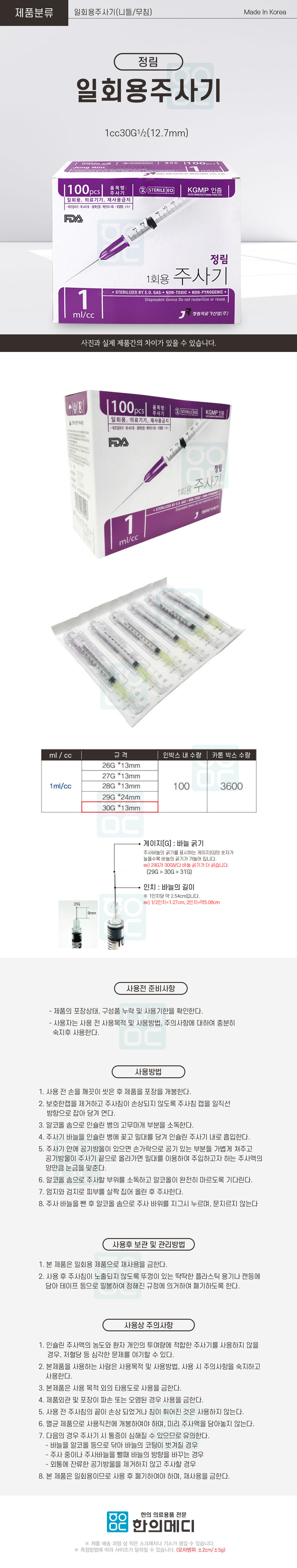 0.5cc(31G)*8mm / 1cc(31G)*6mm / 1cc(31G)*8mm
